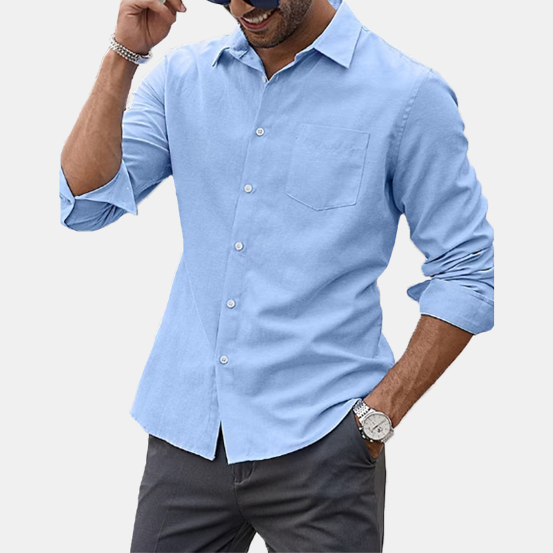 Men's Cotton Linen Casual Long Sleeve Shirt