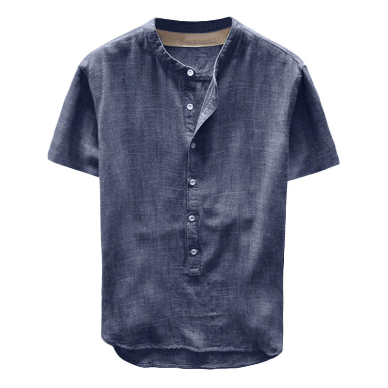Men's linen cotton Henley shirt casual shirt short sleeve T shirt