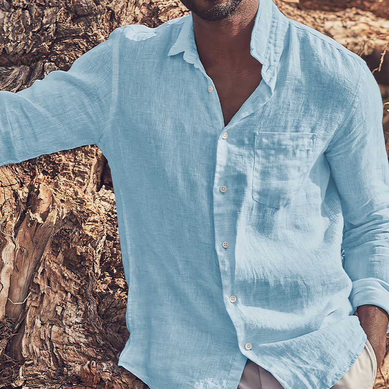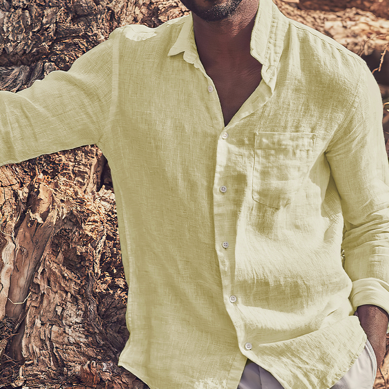 This shirt has a business-casual style element and is made from cotton, which is extremely breathable. This resort style shirt is made of classic natural cotton linen fabric, wearing it is soft, comfortable and breathable! Simple collar and pockets design, let you experience the ultimate minimalist casual style!Whether for outdoor sports, leisure activities or social gatherings, this shirt will keep you elegant and gentlemanly for a long time.