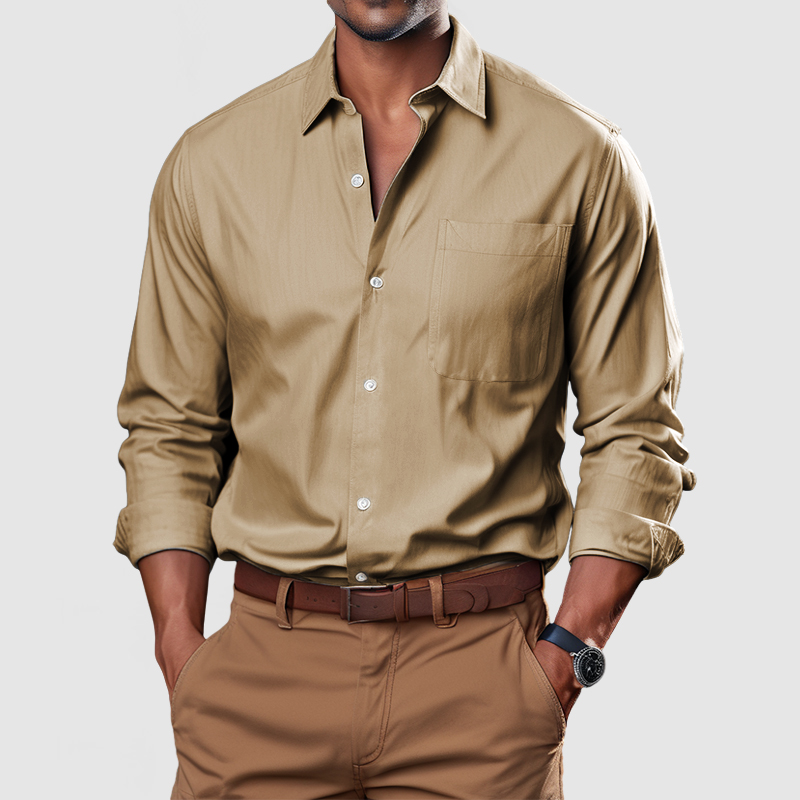 This shirt has a business-casual style element and is made from cotton, which is extremely breathable. This shirt is crafted from wrinkle-resistant cotton. The simple collar and pockets are designed to reflect the wearability of this shirt. This will be a highly utilized shirt in your closet! Whether for outdoor sports, leisure activities or social gatherings, this shirt will keep you elegant and gentlemanly for a long time.